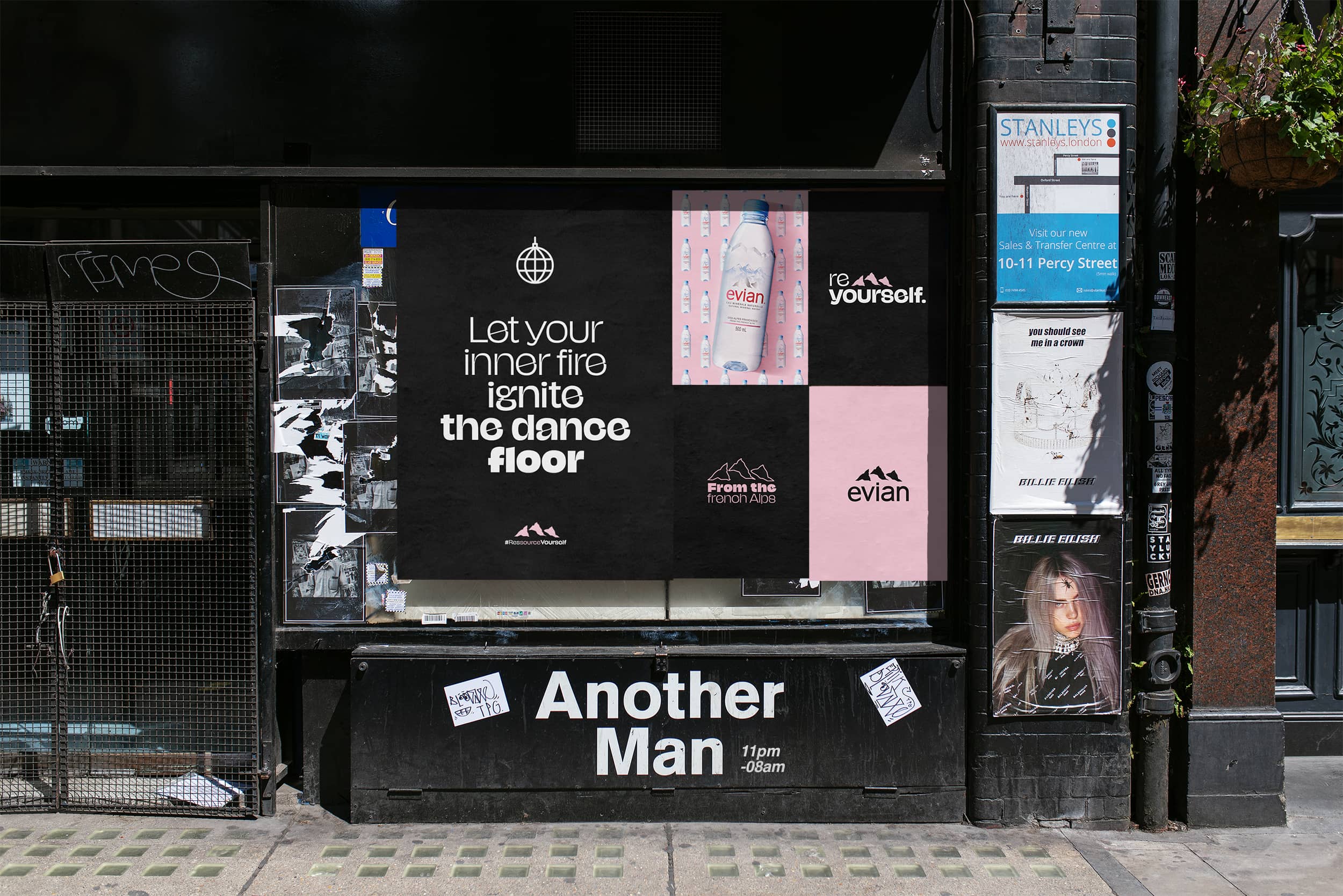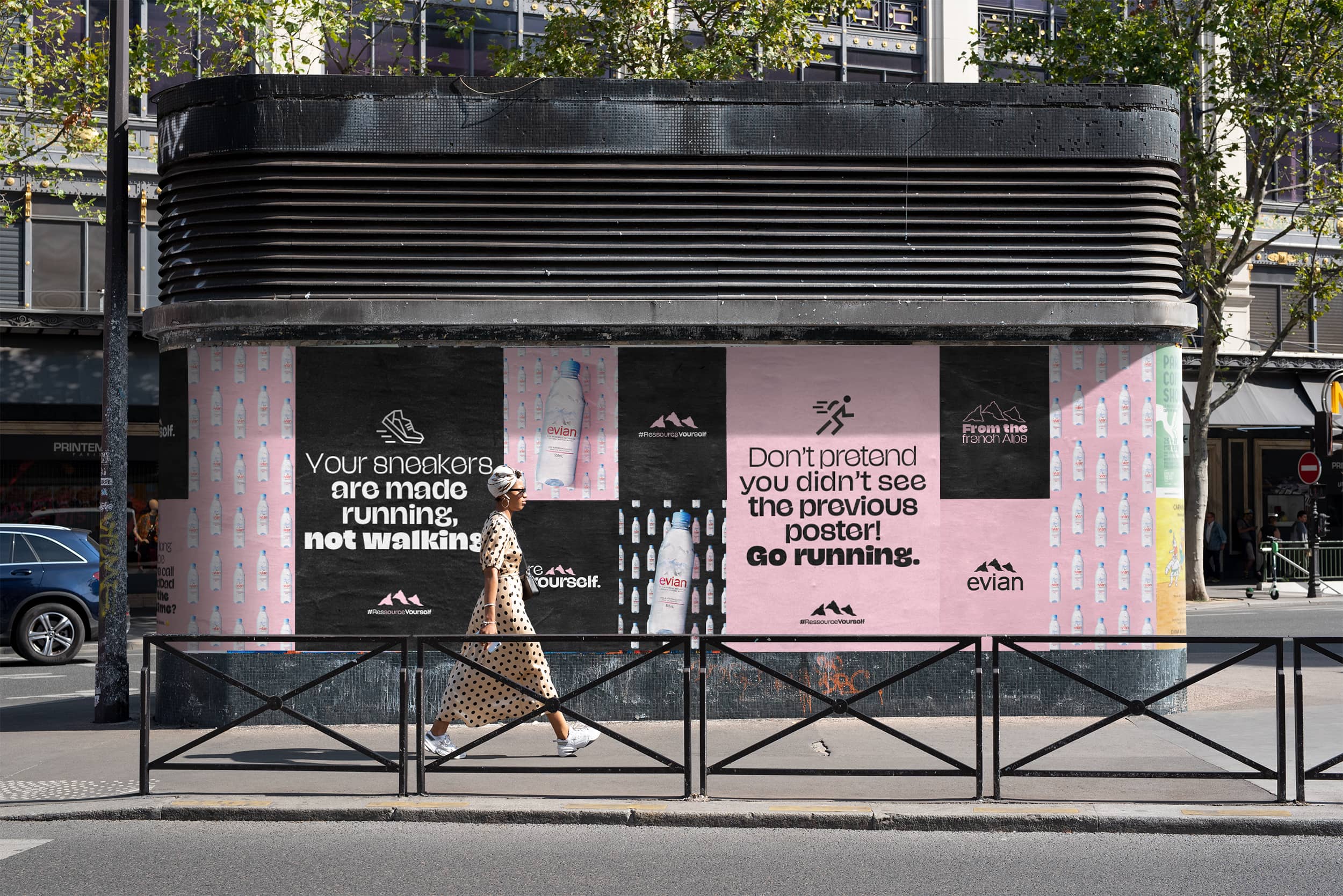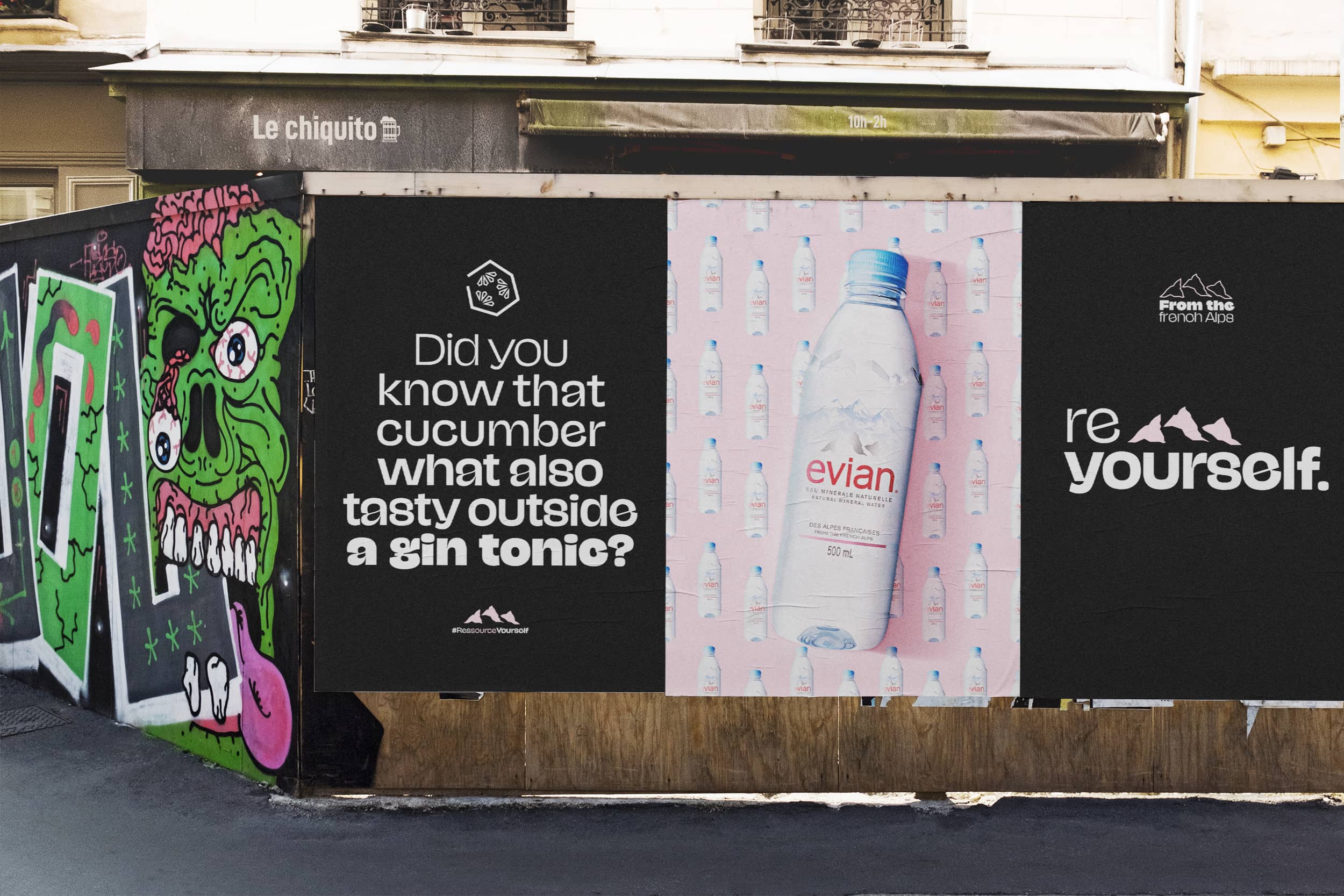 In an international pitch for the VMLY&R USA network, we represented the French team. We were in charge of creating a visual and impactful campaign for Evian (Big idea + adaptations). The Evian brand wished to communicate in a new way, more modern and more connected to the young generation without denaturing the values of the pure water of the French Alps.