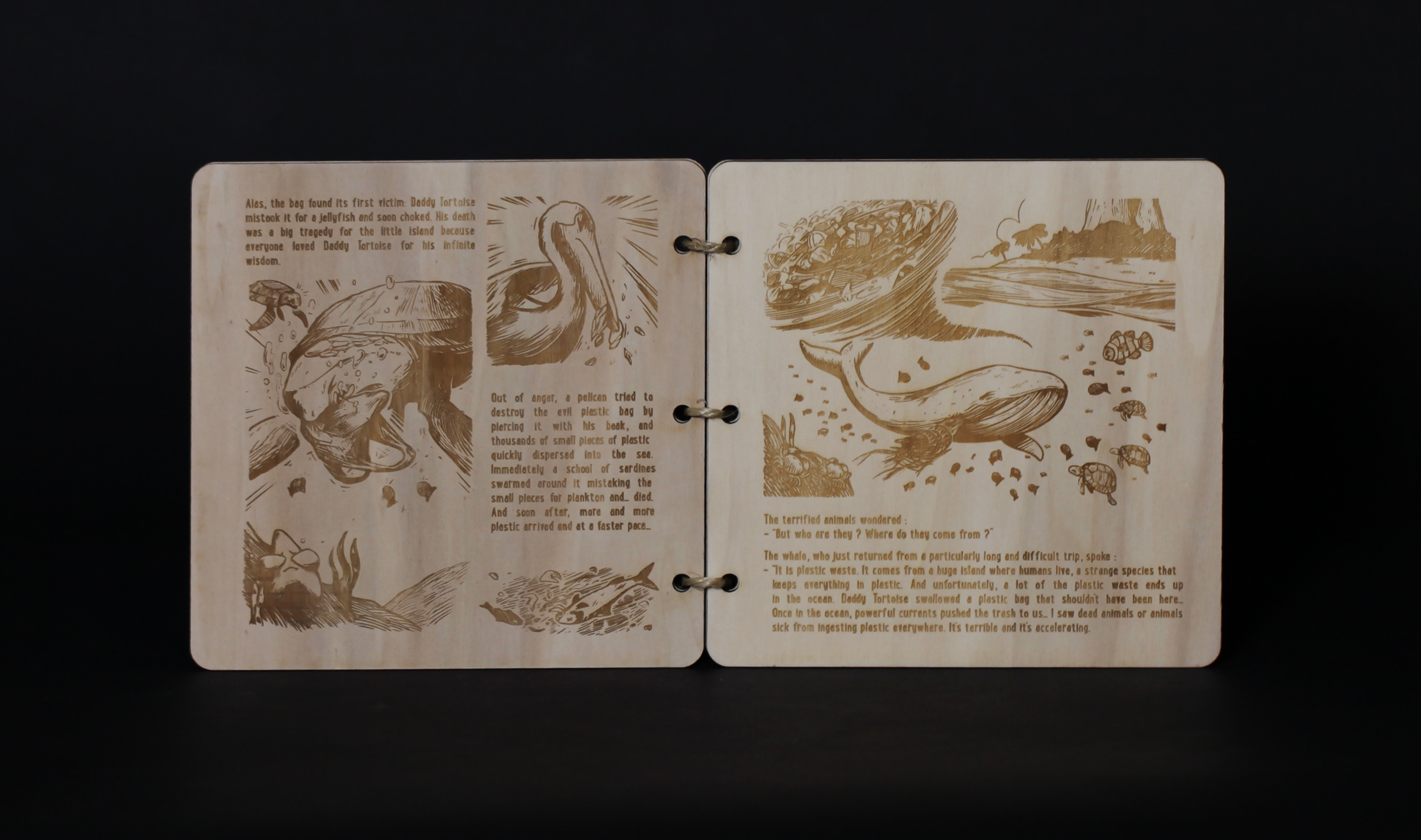 The First Book crafted by animals and tailored to Kids to raise awareness about the Ocean. We decided to create books made of wood, carved by marine animals according to the story. These books are found on a beach of France and is a cry for help to save the Ocean.
